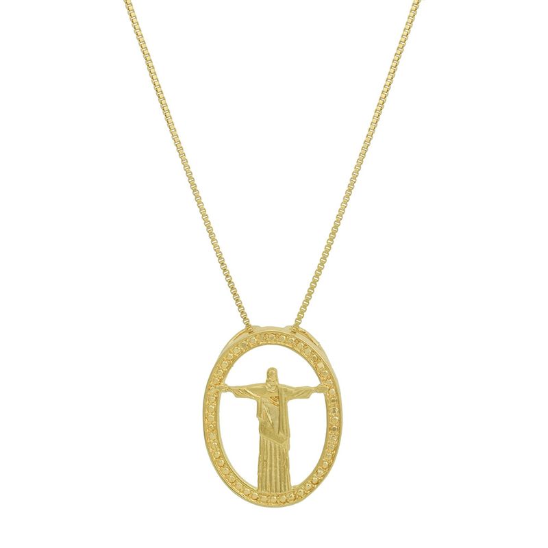 Colar cristo redentor Morana vazado. Banho Dourado.
