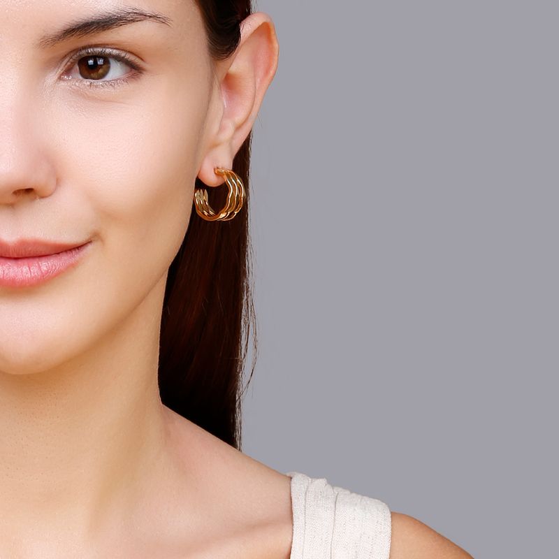 Brinco mini argola tripla Morana. Tamanho 20mm. Banho Dourado.